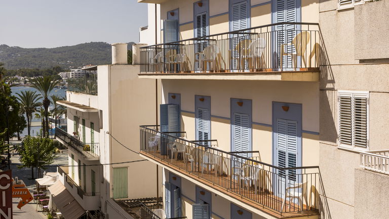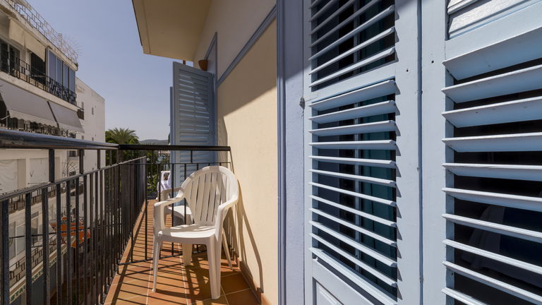 Con balcón vistas a una calle peatonal y a un lateral se ve el mar.