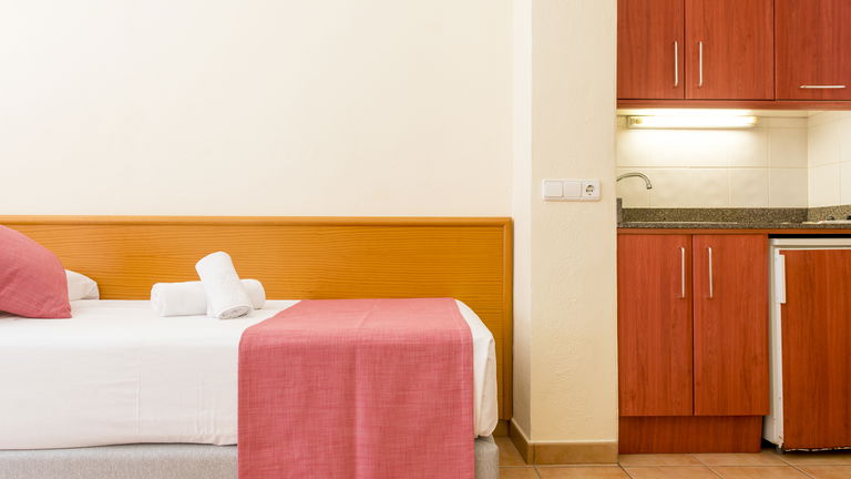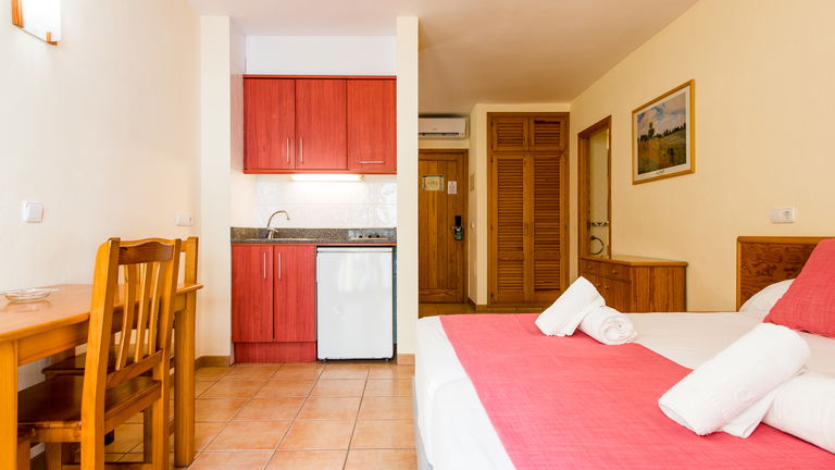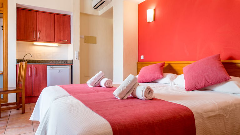 Son apartamentos estudios con aire acondicionado, cuenta con dos camas individuales y un sofá cama. Tiene cocina, vajillas, nevera, mesa comedor, cuarto de baño privado con bañera y balcón.